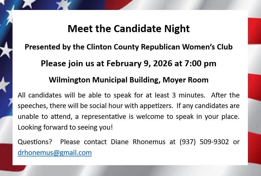 Welcome to the Clinton County Republican Women’s club. We are a group of local women who are engaged in our community and who are committed to supporting Republican ideals.
